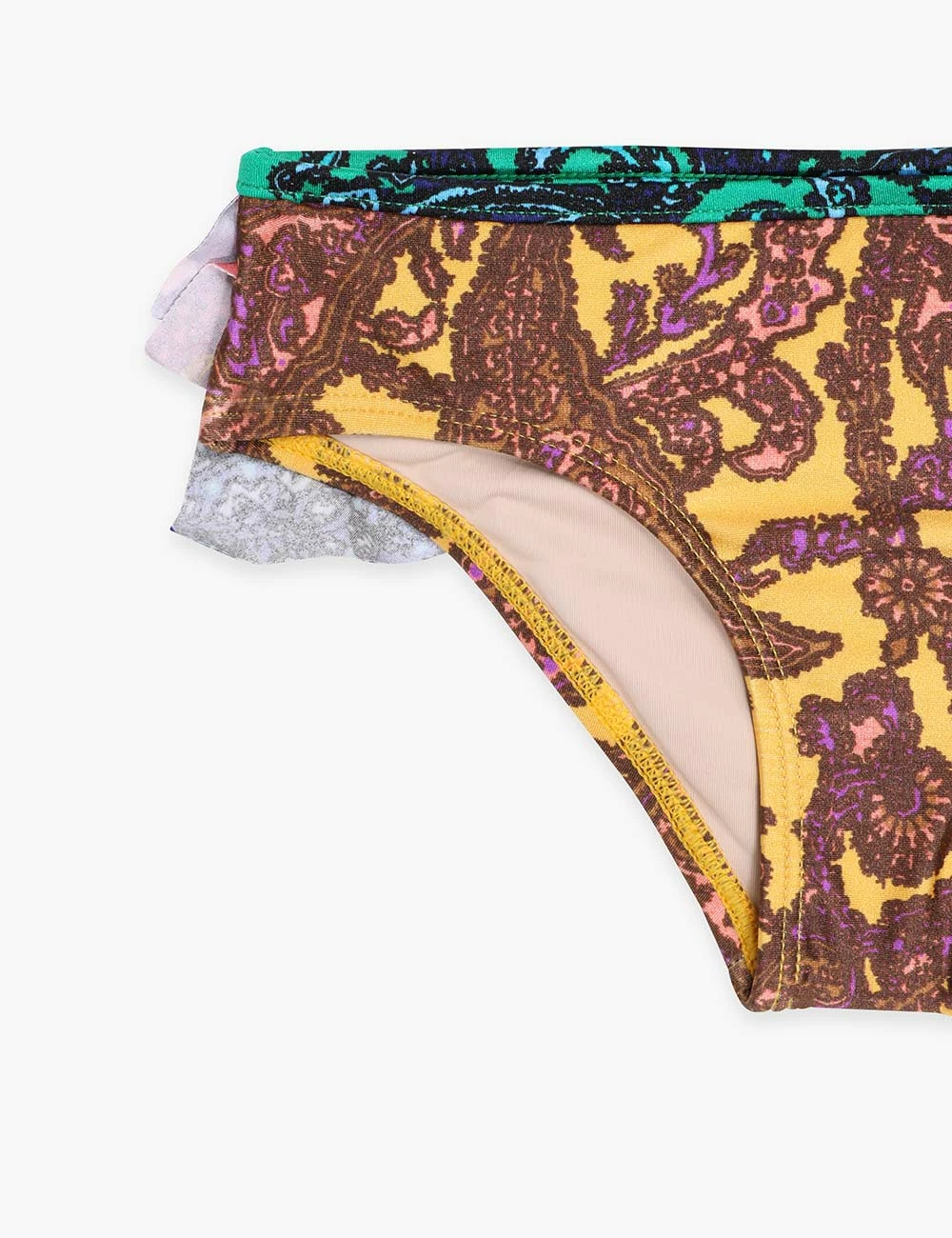 Do not roll up when wet. Rinse thoroughly after use. Cold hand wash only, wash separately. Dry in shade. Do not bleach/iron. Light colours may be transparent when wet. Avoid contact with suntan lotions, oils and rough surfaces. Avoid high temperature pools and spas treated with harsh chemicals. Always check the garment care label for specific care instructions